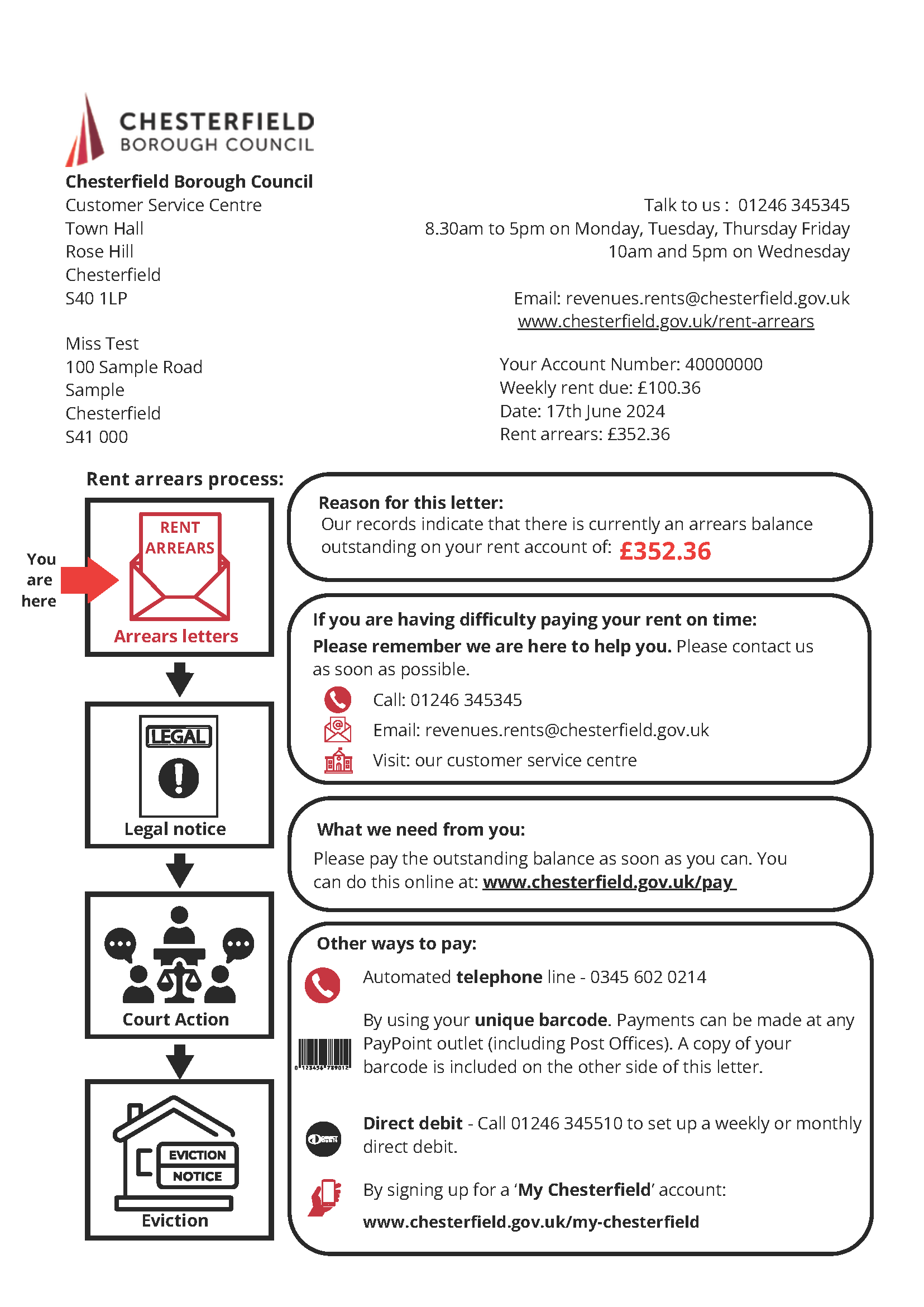 We would like to see how the new revised rent arrears letter impacts on people contacting the rents team for help and look to gather feedback on the content and design so we can review further based on tenant feedback.